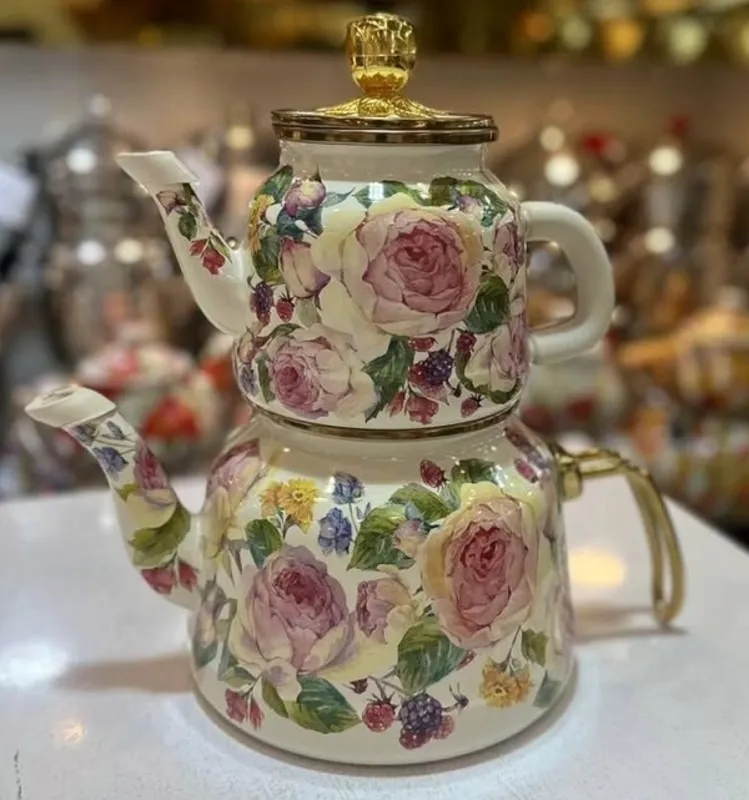 کتری قوری لعابی میس بتی اصل ترکیه با طراحی شیک و لعاب مقاوم، گزینهای ایدهآل برای دمکردن چای خوشطعم و استفاده روزمره است. این کتری قوری ترکیهای با پخش یکنواخت حرارت، کیفیت بالایی در جوشآوردن آب و دمکشیدن چای دارد. بدنه لعابی باکیفیت، شستوشوی آسان و دوام بالا را تضمین میکند. اگر بهدنبال خرید کتری قوری لعابی باکیفیت هستید، میس بتی انتخابی زیبا و ماندگار برای آشپزخانه شماست.